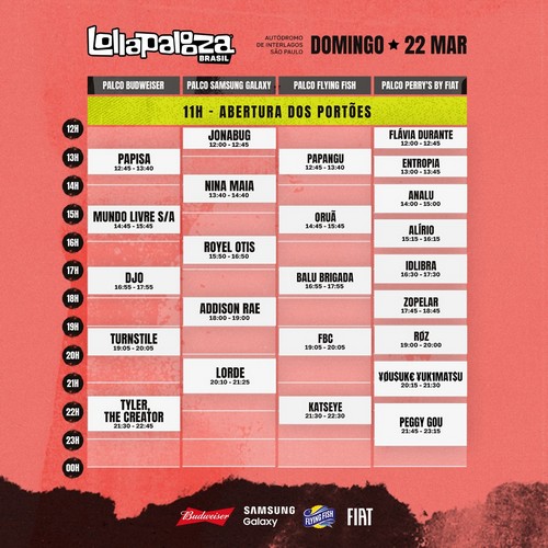 Domingo às 19h30 abertura 18hDuração: cada show tem um tempo de duração, em geral 80 minutos mínimos