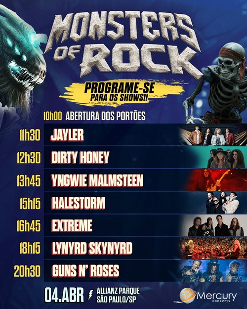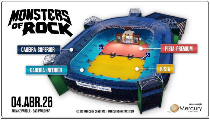 Abertura de vendas pela Internet: Online: Dia 14 de novembro (sexta-feira) às 10h - www.eventim.com.br/monstersofrock2026.